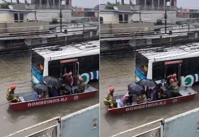 As fortes chuvas que atingem o Rio de Janeiro desde a madrugada desta quarta-feira (17) provocaram alagamentos, resgates dramáticos e colocaram a Região Serrana em alerta extremo para risco de deslizamentos. Em Petrópolis, bombeiros fazem buscas pelo ocupante de um carro que foi retirado do Rio Palatino. Na capital fluminense, 20 passageiros precisaram ser resgatados com um bote do Corpo de Bombeiros após um ônibus ficar ilhado em Campo Grande, na zona oeste.