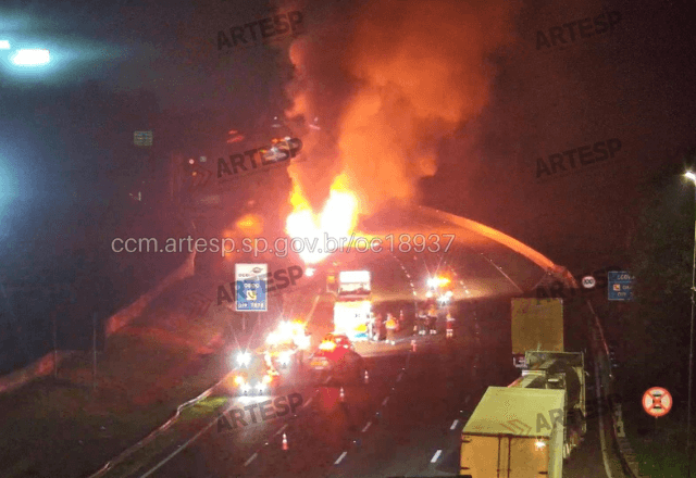 Em nota, a Ecovias informou que o incêndio começou após a carreta tombar e, na sequência, bater contra uma mureta. Às 3h47, um caminhão-pipa chegou ao local e, em seguida, a equipe de conservação foi acionada.