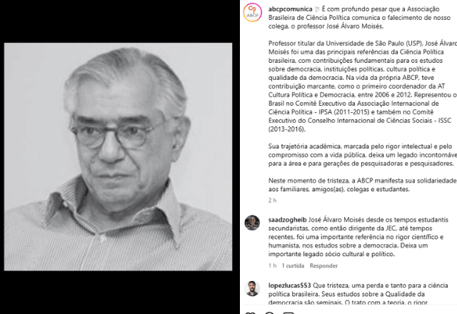 "Sua trajetória acadêmica, marcada pelo rigor intelectual e pelo compromisso com a vida pública, deixa um legado incontornável para a área e para gerações de pesquisadoras e pesquisadores. Neste momento de tristeza, a ABCP manifesta sua solidariedade aos familiares, amigos(as), colegas e estudantes", disse, em comunicado nas redes sociais.