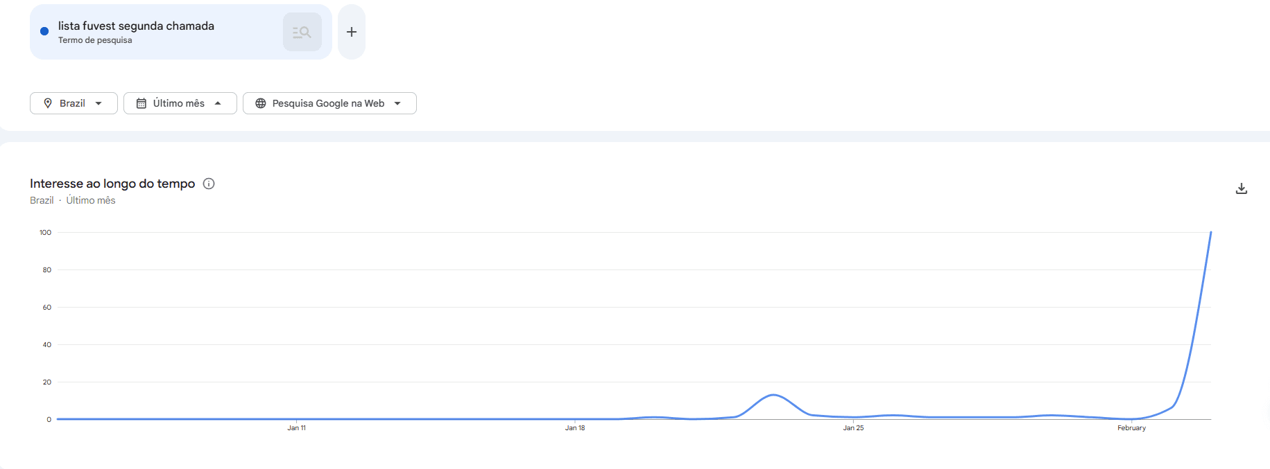 Após a divulgação da segunda chamada da Fuvest, houve um aumento nas buscas sobre o vestibular da USP. Os dados são do Google Trends, ferramenta que exibe os termos mais pesquisados no Google.