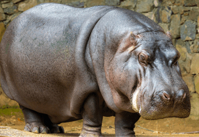 Espécie originária da África, o hipopótamo está classificado como vulnerável à extinção e pode pesar várias toneladas, sendo um dos maiores mamíferos terrestres. Apesar do porte, alimenta-se de vegetais e passa grande parte do tempo na água, onde se desloca caminhando em vez de nadar.