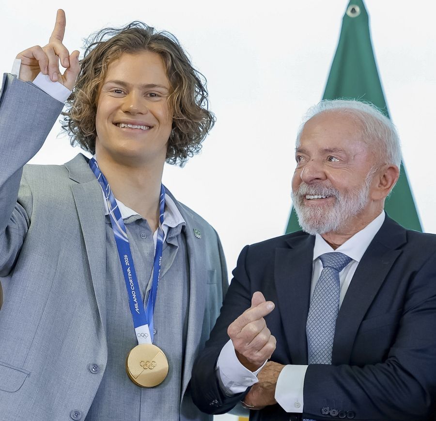 A primeira-dama Janja ressaltou o impacto da conquista no país. Segundo ela, mesmo sem tradição em esportes de inverno, o Brasil acompanhou a prova e vibrou com a medalha, apesar do horário desfavorável.