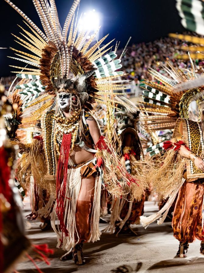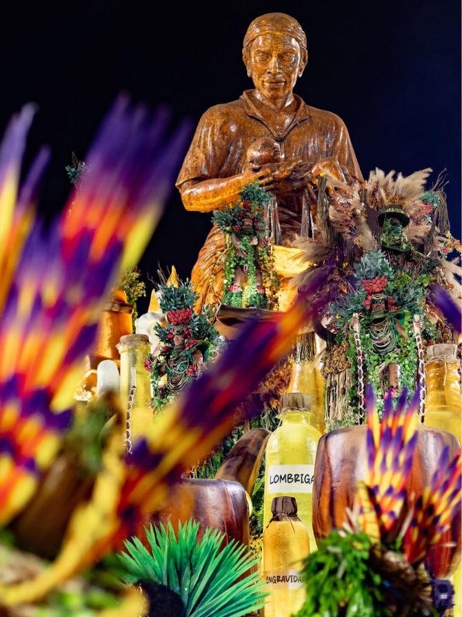 - Estação Primeira de Mangueira: "Mestre Sacaca do Encanto Tucuju – O Guardião da Amazônia Negra". A verde e rosa cantou na avenida a história de Mestre Sacaca, referência dos saberes afro-indígenas no Amapá e conhecido como "Doutor da Floresta".