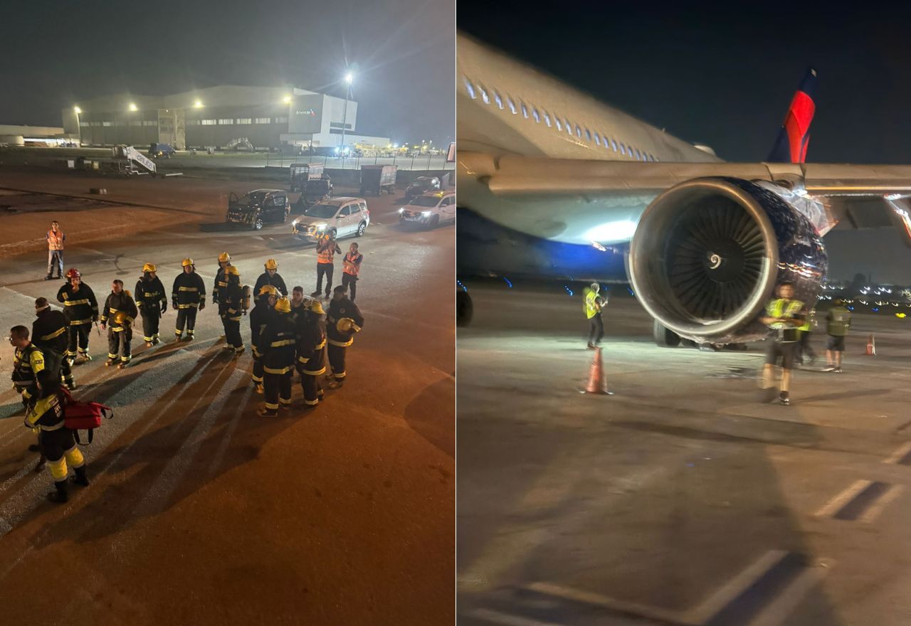 Um avião da Delta Air Lines precisou retornar ao Aeroporto Internacional de São Paulo, em Guarulhos (SP), e fazer um pouso de emergência após a explosão de uma turbina logo depois da decolagem, na noite deste domingo (29). Passageiros que estavam na aeronave filmaram o momento de desespero (veja vídeo acima).