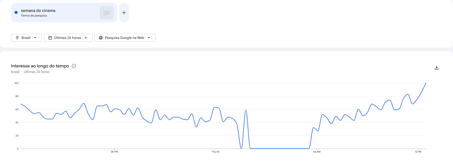 Com o início da semana do cinema, houve um aumento nas buscas sobre detalhes das informações e promoções. Os dados são do Google Trends, ferramenta que exibe os termos mais populares no buscador.