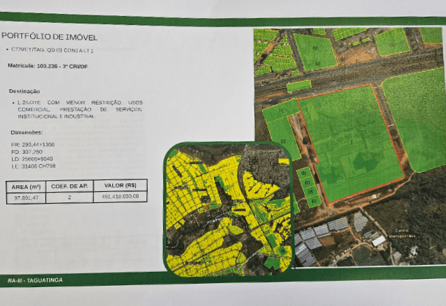 O terreno tem área de 97.891,47 m². Sua venda depende de autorização da Câmara Legislativa do DF, e o dirigente do BRB tenta convencer os deputados distritais a apoiar a transação.