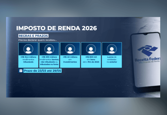 A entrega da declaração do Imposto de Renda 2026 começa na próxima segunda-feira, 23 de março, e vai até 29 de maio. O prazo e as regras foram publicados nesta segunda-feira (16), no Diário Oficial da União, pela Receita Federal.