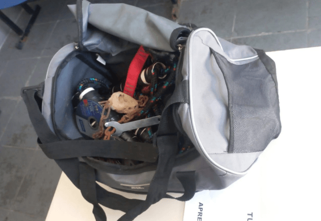 Após a tentativa frustrada, agentes penitenciários localizaram uma bolsa abandonada pelos suspeitos, contendo quatro discos de maquita e outros equipamentos utilizados para o corte de estruturas metálicas. Uma corrente, que também foi encontrada, já estava parcialmente serrada.