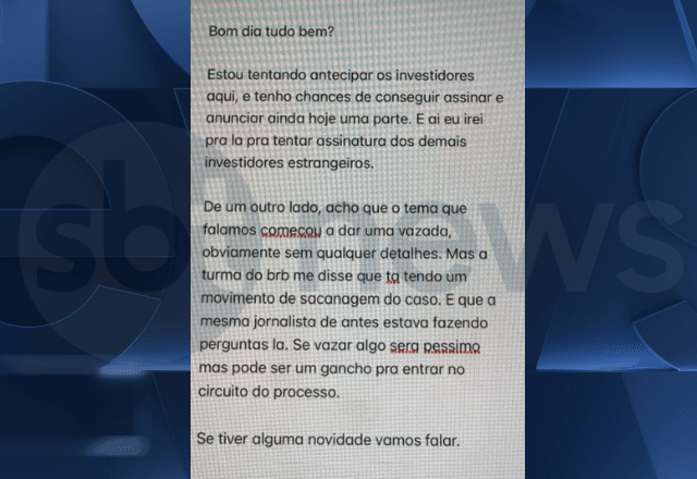 Na sequência, as mensagens do banqueiro mencionaram o BRB, outra instituição financeira que tentou comprar o Master e teve operação negada pelo BC.