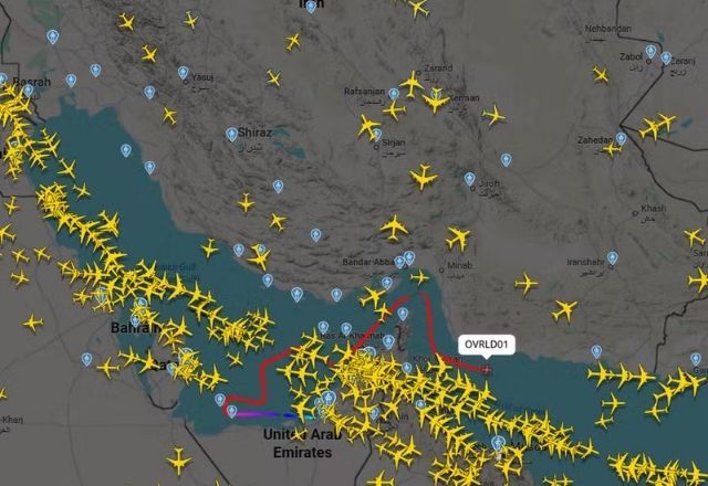 Um avião da Marinha dos Estados Unidos sobrevoou uma área próxima à costa do Irã na madrugada desta quarta-feira (14). O percurso foi registrado pelo site de monitoramento aéreo FlightRadar24, que mostrou que a aeronave norte-americana partiu de Abu Dhabi, nos Emirados Árabes Unidos.
