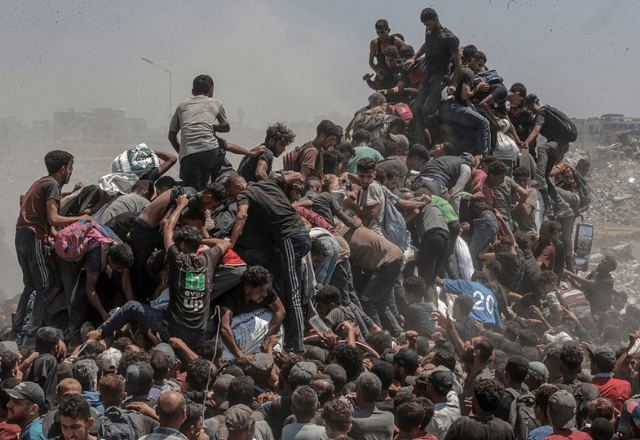“Emergency Humanitarian Aid in Gaza”, de Saber Nuraldin, que retrata a crise humanitária na Faixa de Gaza