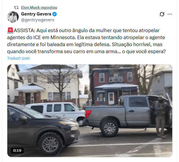 Bilionário republicou imagens em câmera lenta que, segundo autoridades, mostram tentativa de atropelamento contra agentes do ICE antes do tiroteio