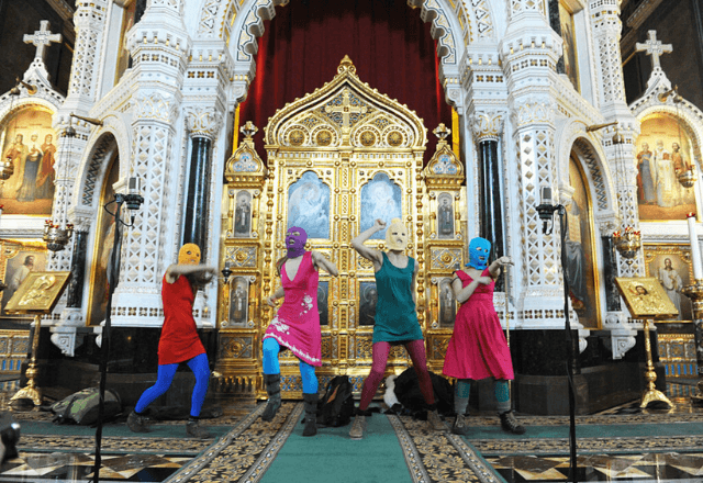 O grupo feminino é alvo de represálias por criticar publicamente o governo de Vladimir Putin desde 2012. Neste mesmo ano, após protestarem contra o presidente e a Igreja Ortodoxa Russa dentro da Catedral de Cristo Salvador, em Moscou, as integrantes Nadya Tolokonnikova, Maria Alyokhina e Kat Samutsevich foram condenadas a 13 anos de prisão — sendo condicionadas a anistia e libertadas em 2013.