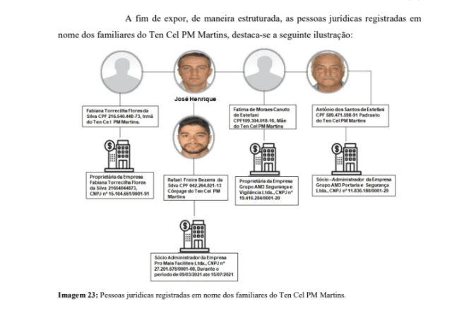 “A prática administrativa e a experiência investigativa demonstram que a constituição de empresas em nome de familiares, nesses casos, não se apresenta como estratégia lícita de organização patrimonial, mas como meio de burla ao regime jurídico militar”, diz o inquérito.