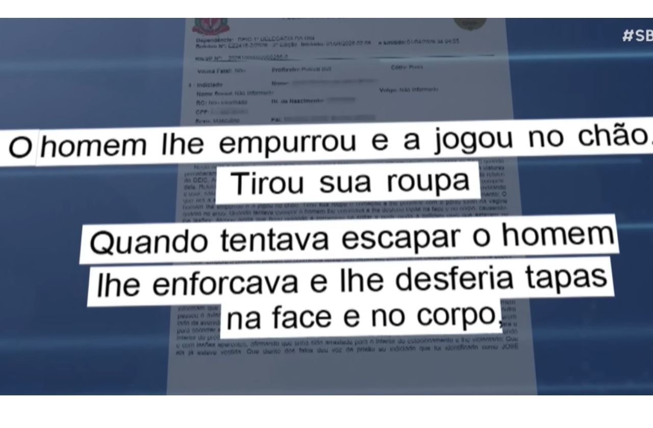 Ela foi abordada e levada à força para dentro do estacionamento do Deic, que estava com o portão aberto e sem controle de acesso. A vítima tentou escapar da violência sexual, mas foi contida pelo homem com agressões.