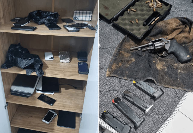 Os agentes entraram na casa e encontraram mais de 50 iPhones, munições, notebooks e outros celulares enrolados em papel-alumínio. A estimativa é que o material apreendido esteja avaliado em cerca de R$ 300 mil.