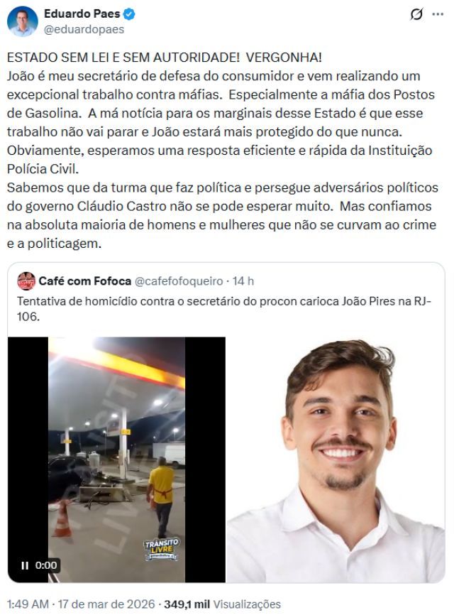 O caso ocorre em meio a tensões políticas entre o prefeito do Rio, Eduardo Paes (PSD), e o governador do estado, Cláudio Castro (PL). Paes afirmou, nas redes sociais, que o secretário tem atuado no combate à chamada "máfia dos postos de gasolina" e cobrou uma resposta rápida das autoridades.