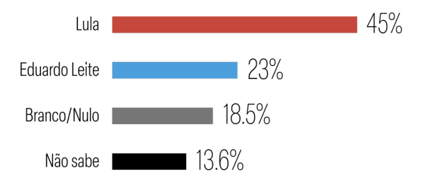 Em outros casos, Lula apareceria na frente da ex-primeira-dama Michelle Bolsonaro (PL) e de governadores de direita como Eduardo Leite (PSD-RS), Ratinho Junior (PSD-PR), Romeu Zema (Novo-MG) e Ronaldo Caiado (União Brasil-GO).