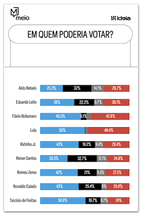 - Lula (46,5%) x Ronaldo Caiado (37,5%);