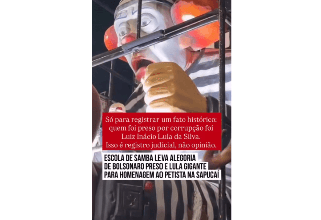 A escola de samba homenageou o presidente Lula. A primeira-dama, Janja, foi convidada a desfilar, mas desistiu para evitar "possível perseguição".