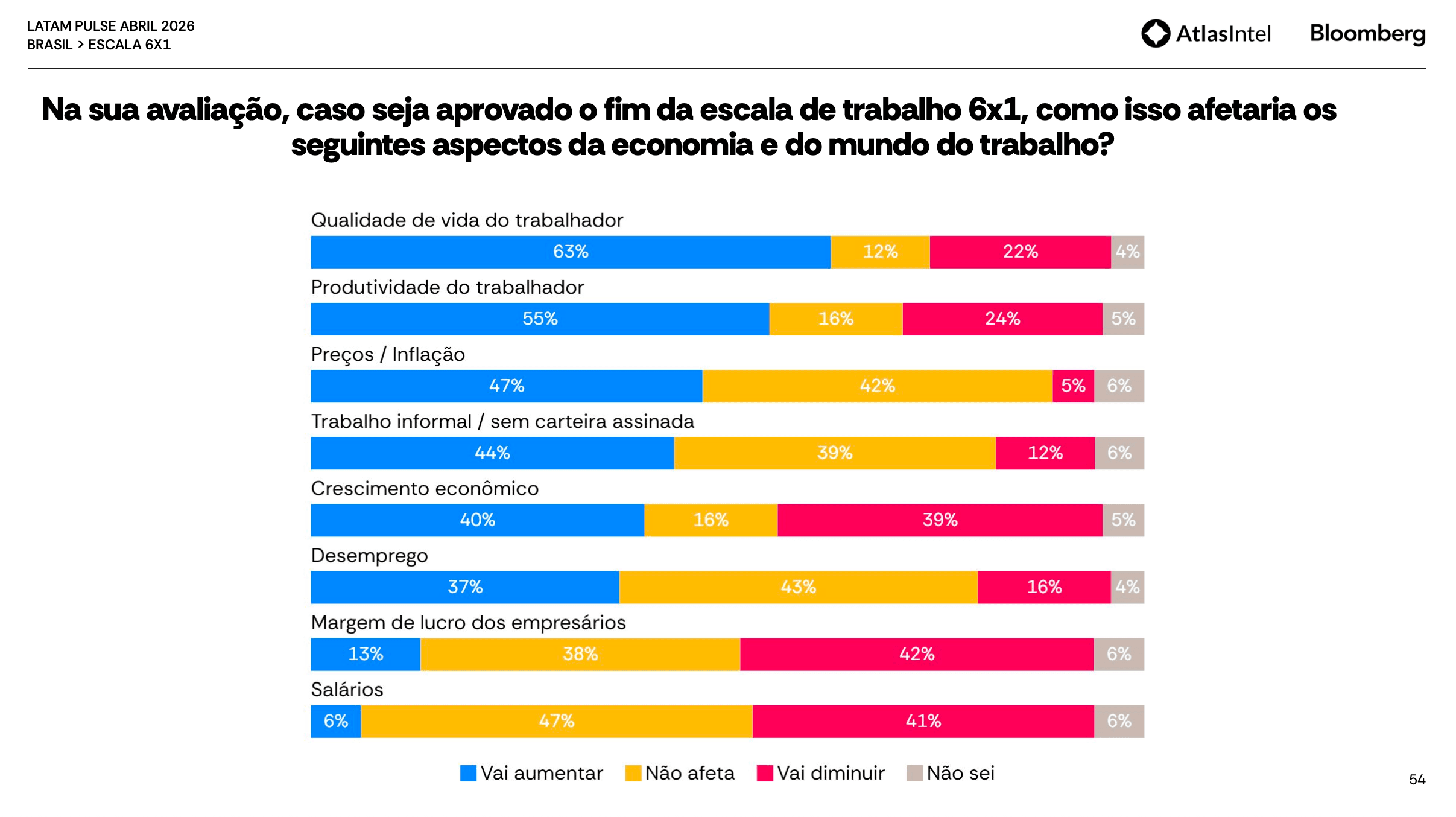 O levantamento também questionou os entrevistados sobre a tramitação da proposta de emenda à Constituição (PEC) pelo fim da escala de trabalho 6x1, que teve comissão especial instalada nesta quarta-feira (29.abr).