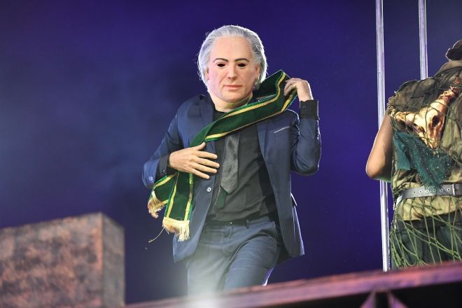 Durante a apresentação deste ano, que homenageou o presidente Luiz Inácio Lula da Silva (PT), Temer apareceu em uma cena na qual tirava a faixa presidencial da ex-presidente Dilma Rousseff (PT), em referência ao processo de impeachment de 2016.